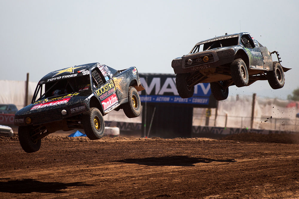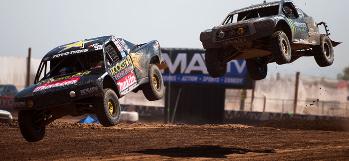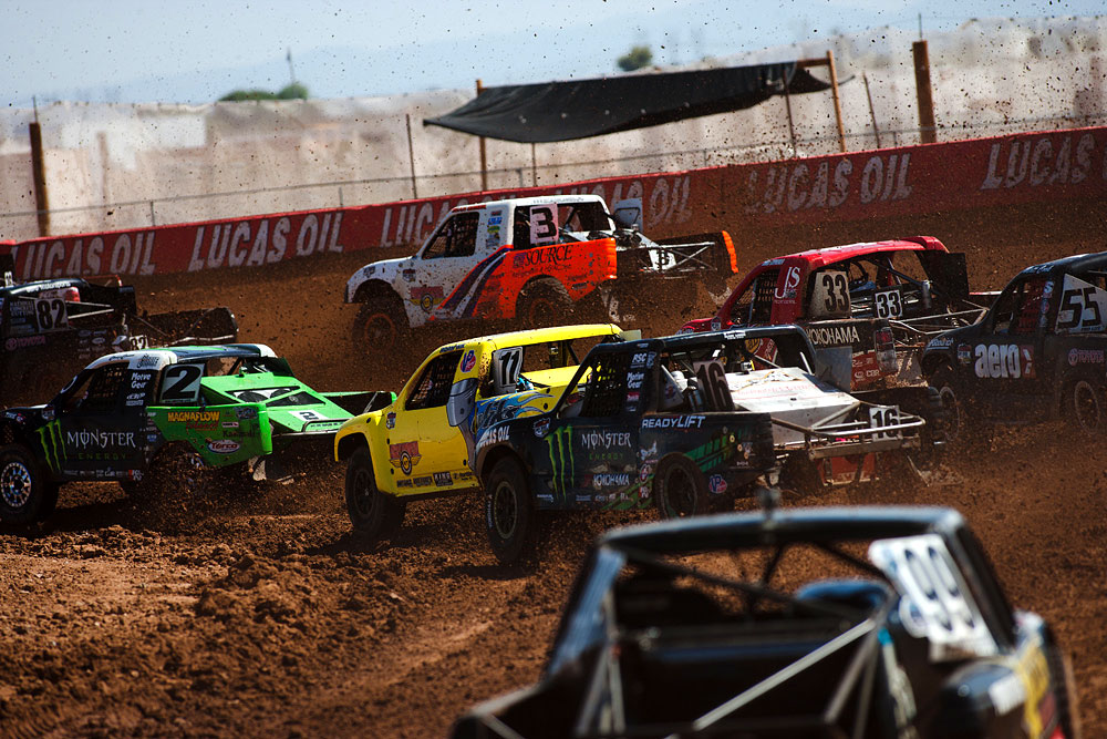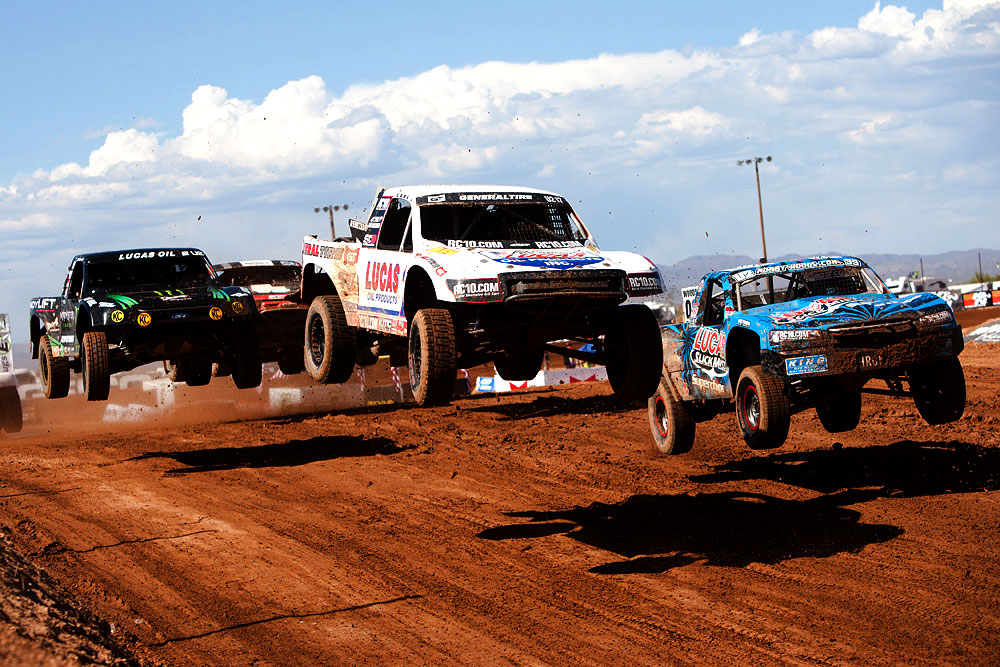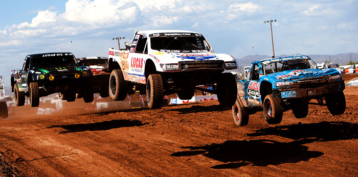 After a seven-week break, the Lucas Oil Off Road Racing Series, presented by GEICO, is back in action this weekend, as the Speedworld Off Road Park plays host to Rounds 11 and 12 of the 2011 season this weekend. The temperatures were definitely warm here in the northern Phoenix suburb of Surprise, but some clouds overhead this morning made the day much more bearable, and a throng of hardy fans filled the stands to see their favorite drivers fly through the air and spray rooster tails of mud and gravel. The end of the season is now in sight, and with just five rounds left to run, the stakes are as high as they’ve ever been, and it showed in the fights that drivers put up on the track today. So you weren’t able to see it in person? Fear not; read on and get informed.