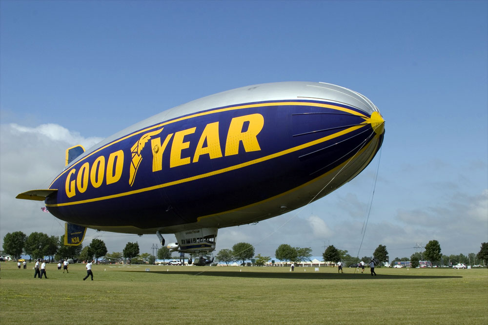 by the Goodyear Tire Company. The iconic Goodyear blimp, with images