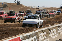 Limited Buggy Kenny Freeman and Tim Pangborn started on the front row of today’s Limited Buggy race after a six position inversion, but neither driver was able to hold off the onslaught of drivers starting just behind them. Sean Kennedy lead the race in his #331Lucas Oil/Goodyear buggy in the early going, ahead of John Fitzgerald, Bruce Fraley, Kyle Quinn, and Pangborn in the #332 WaterFX/Maxxis buggy. Yesterday’s winner Fitzgerald then took the lead in his #314 Hart and Huntington/Rockstar buggy, and Fraley also moved his #312 Freeman’s Carpet Service/BFGoodrich buggy past Kennedy to slot in second. Kennedy regained second place behind Fitzgerald by the drop of the competition yellow flag, and these two led Fraley, Quinn in the #311 Wilson Motorsports/Bugpack buggy, and Bryan Freeman in the #318 Lone Kid Racing machine at this point. Once green flag racing had resumed, both Kennedy and Quinn suffered spins, allowing Pangborn back into the top five, along with Sean Geiser. Pangborn then pulled off track, and Geiser suffered a rollover, which brought Kennedy back into fourth, followed by Curt Geer in the #392 BDI Bowden Lothringer in fifth. With the chaos finally subsiding, the top five drivers all held their positions, with Fitzgerald taking back-to-back wins this weekend, ahead of Fraley, Freeman, Kennedy, and Geer.