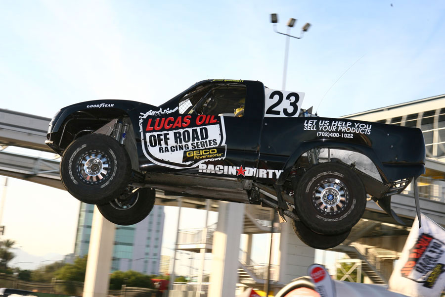 Corona, Ca. (November 9, 2009) – The Lucas Oil Off Road Racing Series made its debut at The Specialty Equipment Market Association (SEMA) show November 3rd-6th, 2009 in Las Vegas, Nevada. Each year hundreds of thousands of people attend the SEMA show to be at the epicenter of automotive technology as the newest innovations in aftermarket products and accessories are shown to retailers and distributors nationwide. Among the cutting edge products, show vehicles and grandiose displays, the Lucas Oil Off Road Racing Series (LOORRS) partnered with series sponsor Toyota to form what was surely the most exciting exhibit of the event.