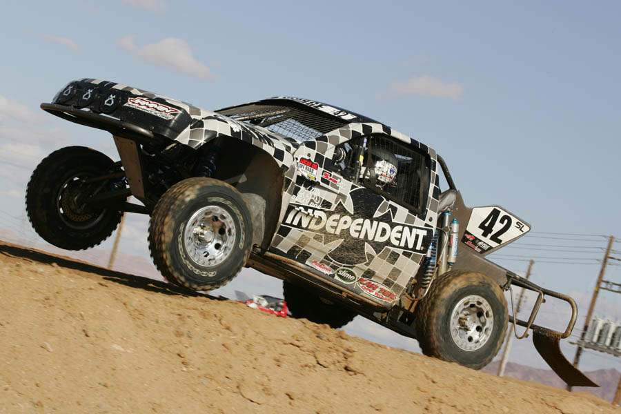 Unlimited Lite The battle for the Unlimited Lite pole was waged between the three drivers waging a bigger war for this year’s Unlimited Lite championship. Current championship leader Chris Brandt was the session’s early leader, setting the provisional pole time at 1:02.138 on lap one in his #82 Rockstar/Hart & Huntington Toyota. Robert Naughton, who currently sits third in points, then took over the top spot on lap two as he turned a 1:01.534 in his #54 Ready Lift/Maxxis Tires Ford. Naughton was the only driver who was able to better the top time in the remainder of the session, which he did a further three times. With the session going an unusual seven laps, Naughton turned in improvements of 1:01.026 on lap three, 1:00.604 on lap six, and the pole-grabbing time of 1:00.241 on the final lap. Brian Deegan, who lies second in the points hunt, found himself second today as well, rounding his #38 Lucas Oil/Metal Mulisha Ford in a time of 1:00.512. Brandt was able to improve his early time, and wound up third with a 1:01.285, while Heath Carpenter took fourth in his #25Jeff Carpenter Racing Ford with a time of 1:01.637. Todd Cuffaro came home fifth in 1:02.288 in his #46 Rockstar/Metal Mulisha Nissan.