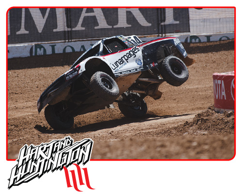 Corona, California (May 1st, 2013) – The Lucas Oil Off Road Racing Series has brought a load of changes to teams and racers for the 2013 season. One transformation was the short course track at Las Vegas Motor Speedway which had recently undergone a major reconfiguration eliminating turns 4 & 5 while improving views for spectators. The result was seriously hot wheel-to-wheel racing action all around. The Hart and Huntington Off Road Team was right in the mix of it, but in the end, one complication and hardship after another prohibited favored results.
